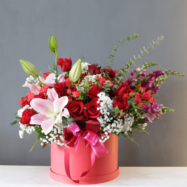 Whether you’re celebrating a birthday, anniversary, or simply wish to brighten someone’s day, the Bloom Box is a versatile choice for any occasion. Its harmonious arrangement of red roses and pink lilies symbolizes love, admiration, and joy, making it a heartfelt gift for friends, family, or even colleagues. The elegant design of the box adds to the charm, making it easy to display and admire.