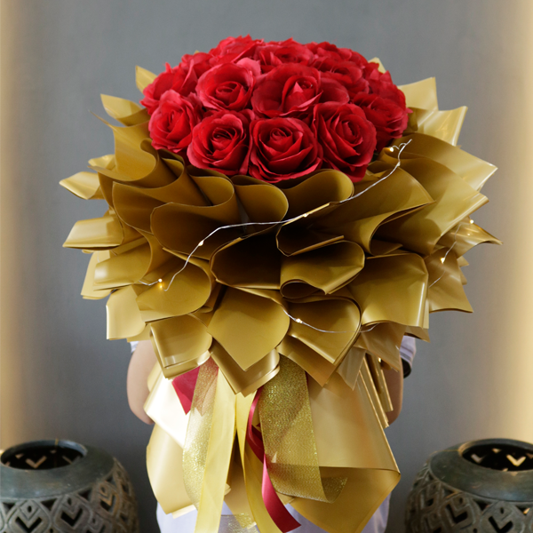 If you’re searching for a gift that speaks volumes, the bouquet shaped like golden lotus paired with vibrant red roses is your answer. This meticulous floral arrangement captures the essence of sophistication and charm, combining the symbolic exclusivity of golden lotus with the passionate allure of red roses. Whether it’s a celebration, a heartfelt expression, or a token of love, this bouquet will leave a lasting impression and elevate any occasion.